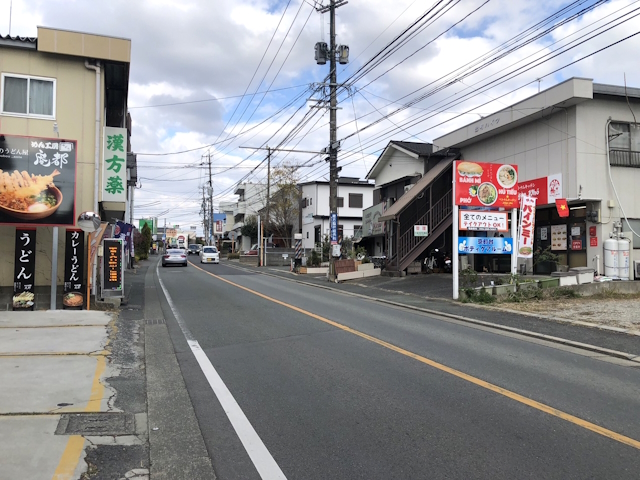 県道303号線を南側からの店舗外観です。(うどん屋さんと漢方薬の看板が目印です)